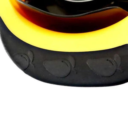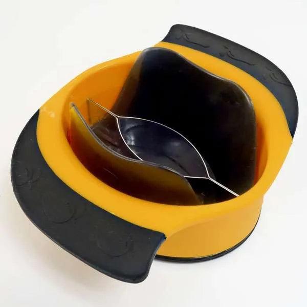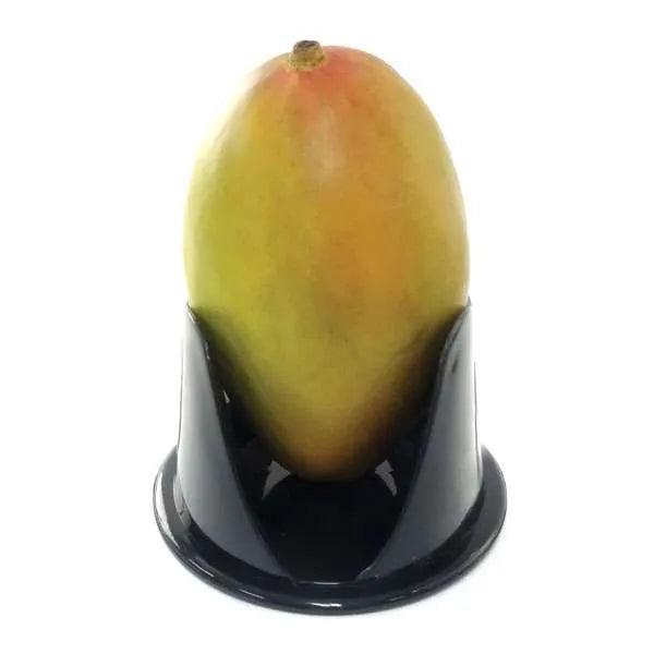 Just position the mango in the center with hole along the shape of the pit and press down firmly and evenly.