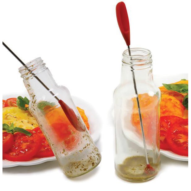 Long, narrow, flexible scoop easily reaches bottom edges of jars and bottles.