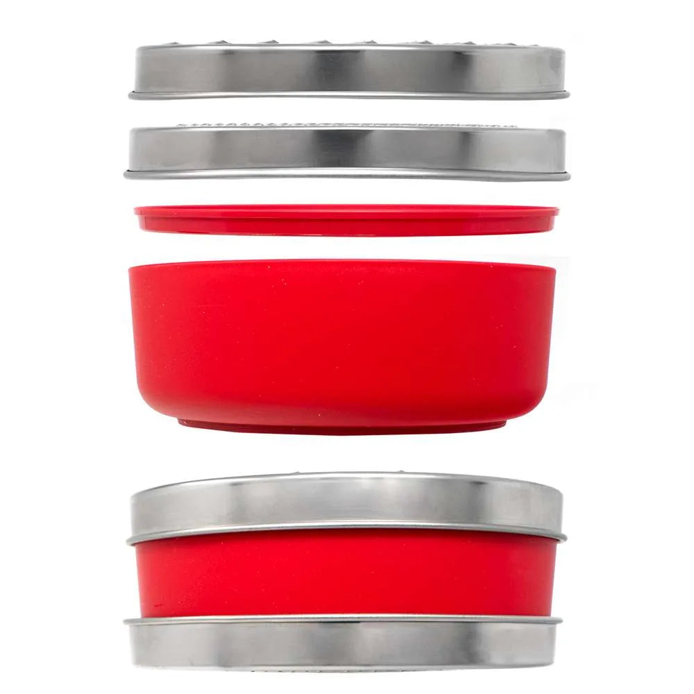 The catcher doubles as a container and with the snap-on lid can be used to conveniently store ingredients.