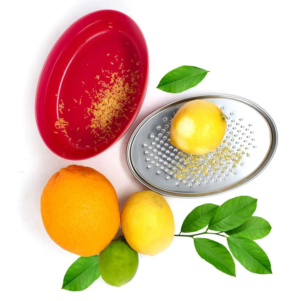Fine surface for zesting citrus fruits, and grating chocolate, ginger, garlic and nutmeg.