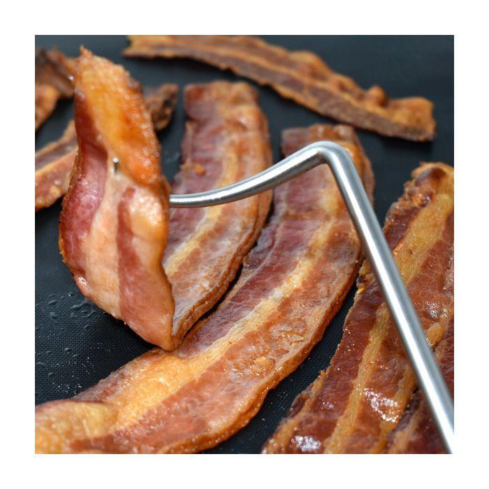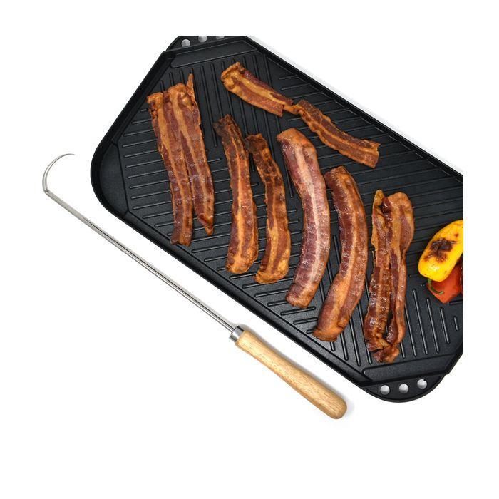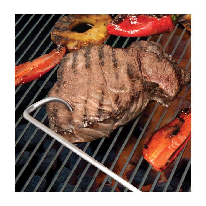 With a flip of the wrist, turn and lift anything on your grill, oven, smoker or campfire up to 15lbs. quickly and efficiently without leaving marks or tearing meat apart. Rack-of-ribs, steaks, tenderloins, chicken, bacon, corn-on-the-cob and so much more.