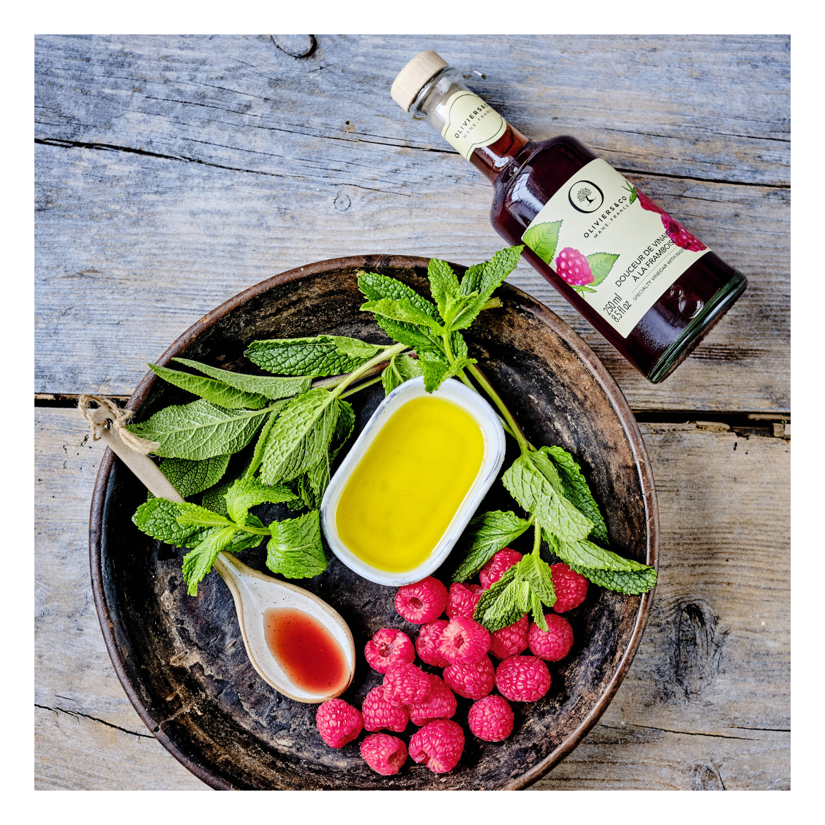 Crafted in Portugal by our master vinegar maker, this sweet raspberry vinegar offers a delicate balance with its slightly acidic taste, creating a pure culinary delight. To capture the full spectrum of flavors, whole raspberries are macerated in gently heated vinegar, then swiftly cooled to preserve the fresh fruit's vibrant aromas.