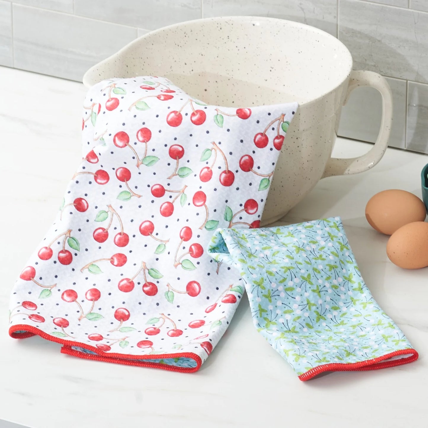 Style: Bringing Mary Engelbreit's signature style to life, cherries burst with playful charm on our Anywhere Towel - reversible!
