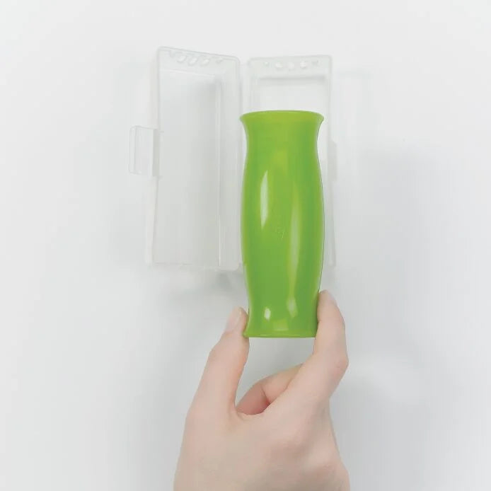 Insert garlic cloves into the green silicone Garlic Peeler and roll back and forth on the table or countertop while pressing downward. Cloves come out peeled, while the peel stays inside. Your hands stay clean and won’t smell of garlic. A quick rinse removes the peel. Storage case included.