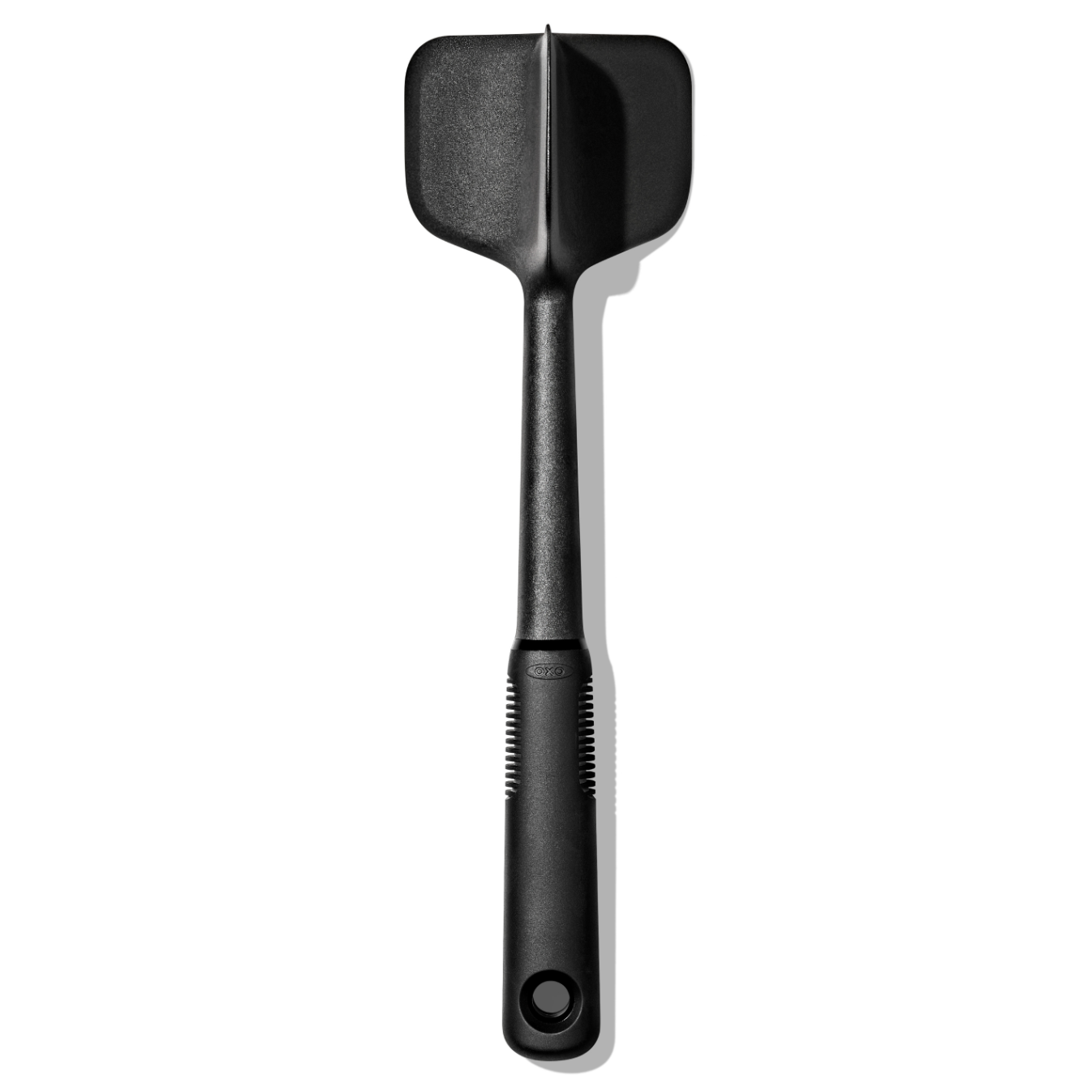 The Ground Meat Chopper & Turner's three wide blades help you stir without getting meat stuck in between. Silicone edge is great for scraping and transferring food out of pans. Rounded design helps you scrape corners of saucepans. Heat resistant up to 400° F.