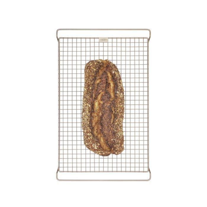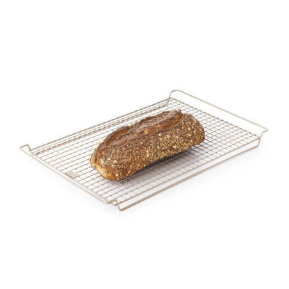 From cooling sweet treats to baking crispy bacon, this Rack is one handy tool. The non-stick, two-layer coating is PFOA-free and swiss-engineered for exceptional performance and food release. The wire pattern is optimized for 360° air circulation, for quick cooling and even baking. The generous handle provides a secure grip for safe transfer and the Rack is designed to fit all standard half-sheet pans