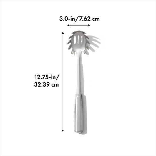 Make pasta night even better with the OXO Steel Spaghetti Server. It can dish out noodles in all sorts of shapes, including bucatini, fettuccini, rotini and even bowties—all thanks to its deep bowl shape and smart prongs that hold on long strands. It also has a drainage hole (which can be used to measure out a perfect serving of dry spaghetti), so you can use this to lift pasta right out of the boiling water. With its sleek, stainless steel design and comfortable handle, you can also use it right at the table.