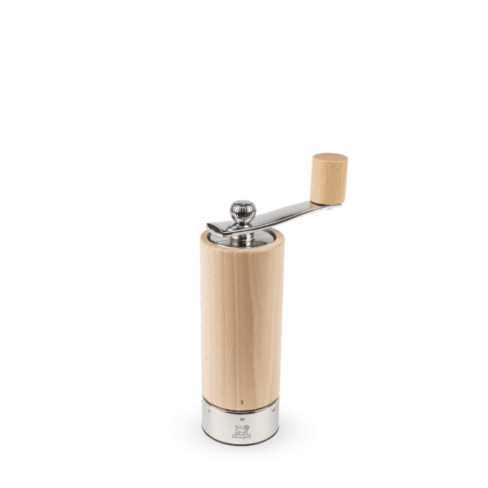 This manual pepper mill with a natural finish is part of the Isen collection. Its design combines the modernity of shiny metal and the warmth of beechwood. Produced in our Franche-Comté workshops, this mill with a handle allows you to grind your favourite pepper effortlessly and precisely. The u’Select patented grind adjustment system located at the base of the mill allows you to select from 6 different grind sizes and provides even grinding. This manual pepper mill is equipped with a Peugeot mechanism in steel, Made in France, which comes with a lifetime guarantee. And to complete the pair, combine it with the Isen u’Select natural salt mill. There is also a matte black option.