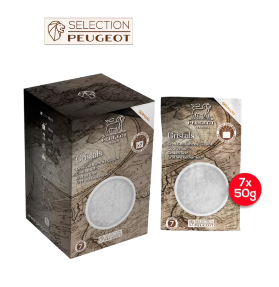 This white salt from Germany, which is ideal for use in your Peugeot salt mill, is characterized by a sparkling bright color and crystalline shape. It will enhance the flavor of all your culinary creations and the taste experience on your palate.