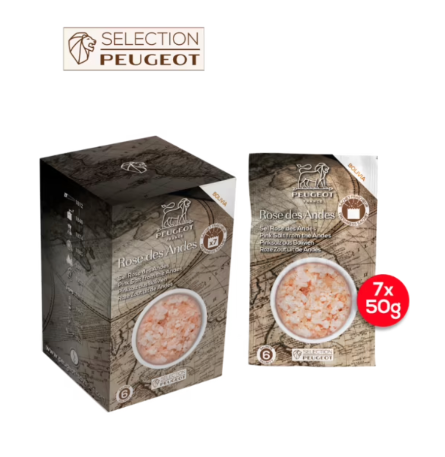 We recommend grinding the salt at the very last moment in a Peugeot salt mill without exceeding the recommended maximum daily salt intake of 5g.