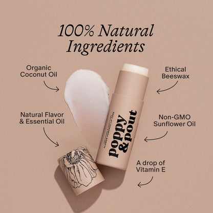 Every Poppy & Pout lip balm is made with 100% natural ingredients and hand-poured into eco-friendly cardboard tubes!