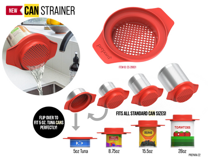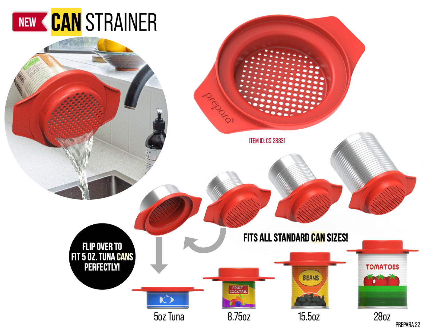 Prepara’s Can Strainer is a practical tool for draining liquids without the mess. It fits all standard can sizes and features two zones with different-sized openings for better flow control, making it perfect for tuna, vegetables, and other canned goods.