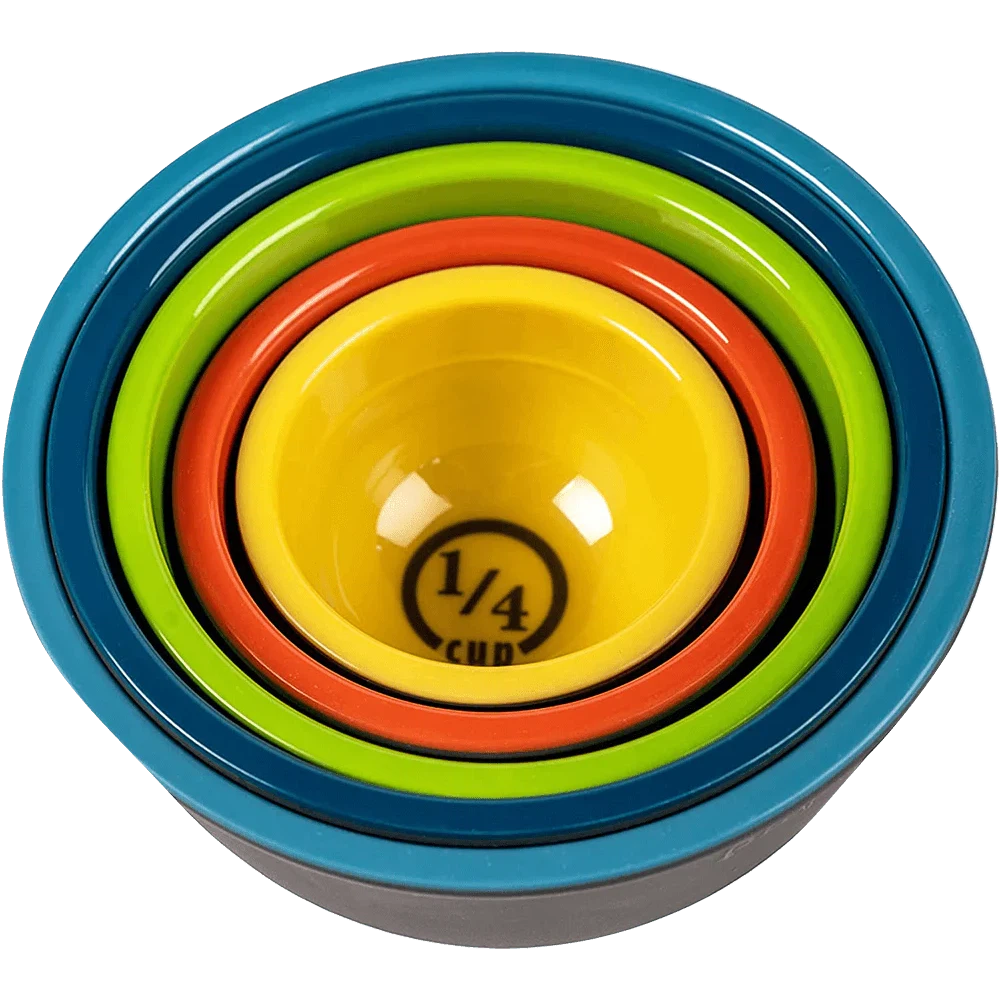 Brighten and simplify your kitchen prep with multi colored measuring bowls! This set of 5 bowls includes a 2 cup, 1.5 cup, 1 cup, 1/2 cup and 1/4 cup measurements. The melamine construction is so durable with a beautiful matte ceramic finish making these bowls a staple in your kitchen draw for all your cooking and baking needs.