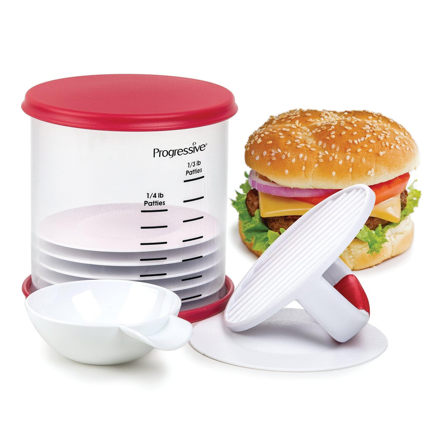 - Easily press and store six 1/4 lb (113.4 g) or 1/3 lb (149.7) burger patties