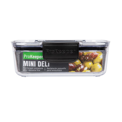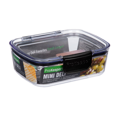 Keep deli meats, bacon, and cheese fresh longer with the Mini Deli ProKeeper+. The 2.9-cup capacity and airtight seal allow for prolonged freshness and convenient food storage. The clear container and lid allow for easy visibility of stored foods. Add this upgraded food container to your storage solutions.