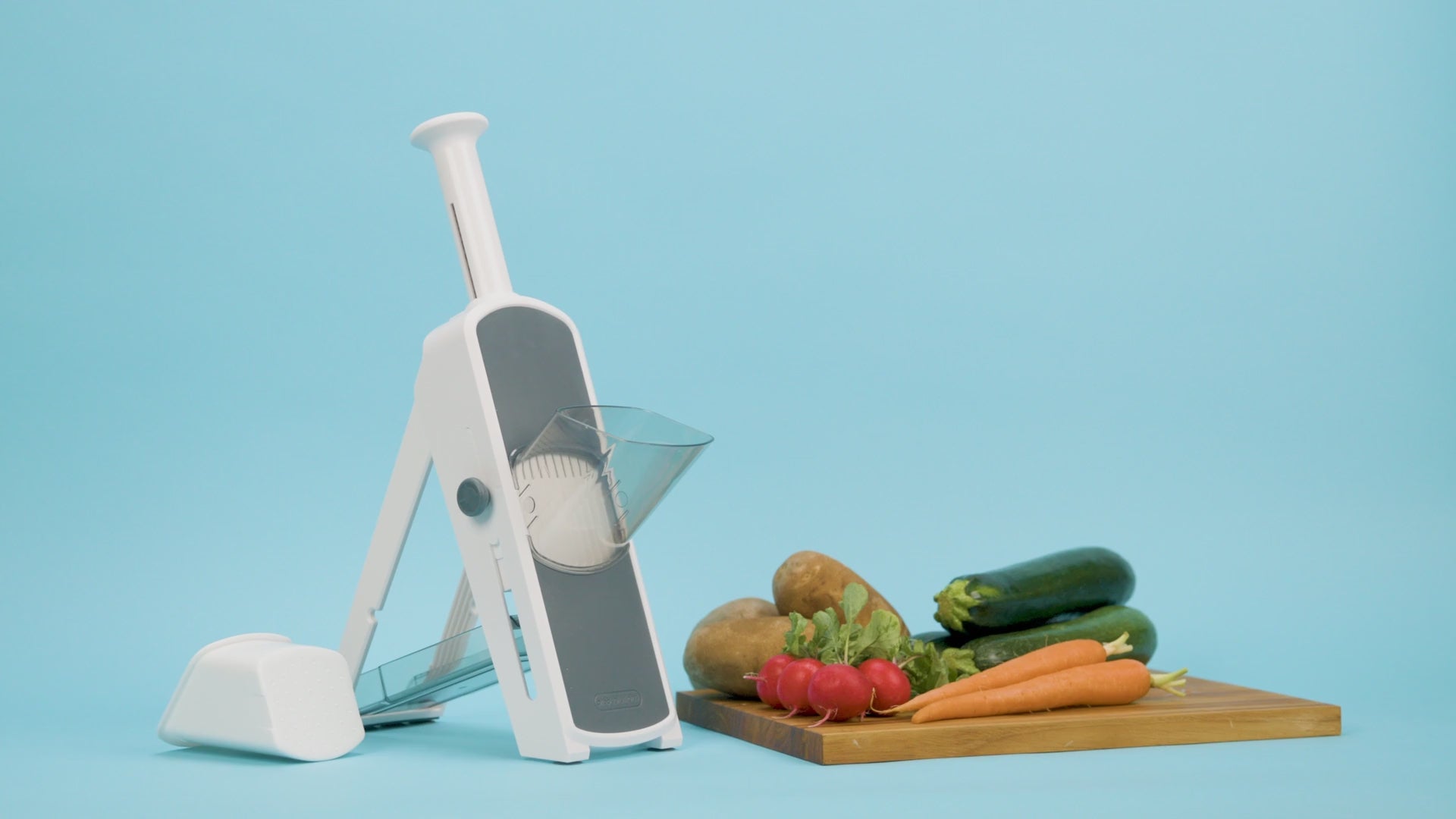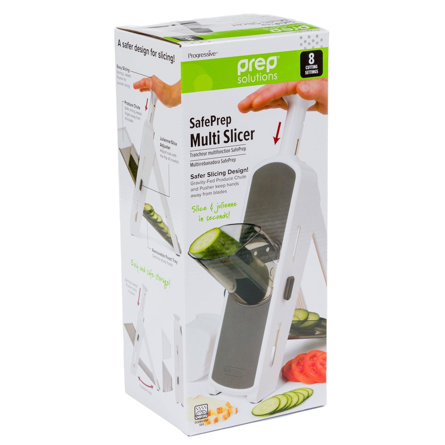 Feel confident using this safe and efficient Prep Solutions Multi-Slicer for simple slices and julienne cuts. The spring-loaded pusher allows for quick use and the design folds for compact storage.