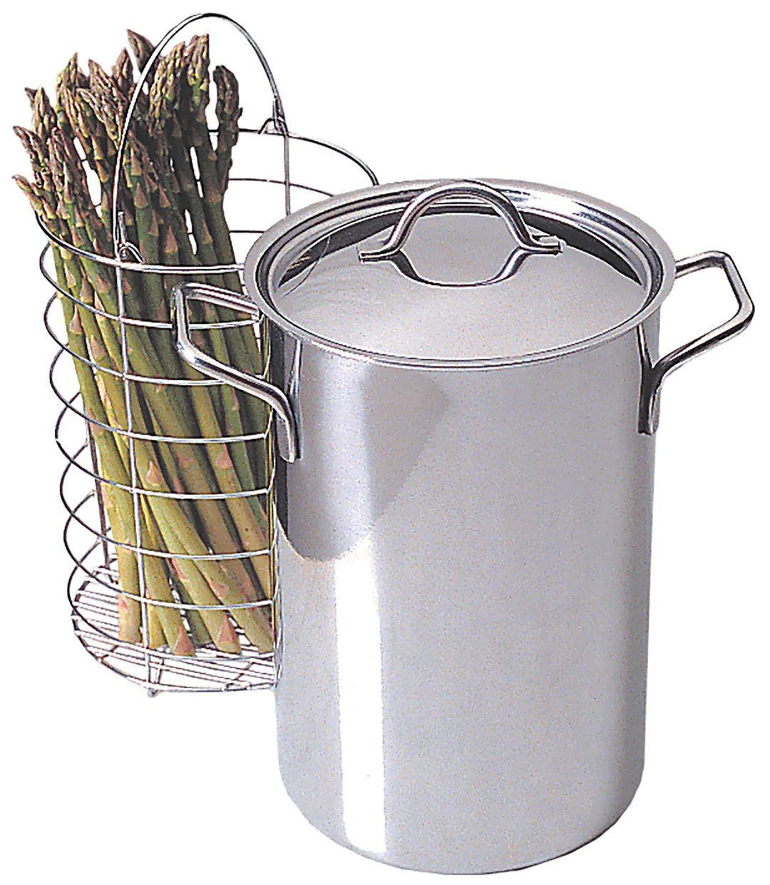 - Features a chromed wire steamer basket, allowing the asparagus to stand up right.