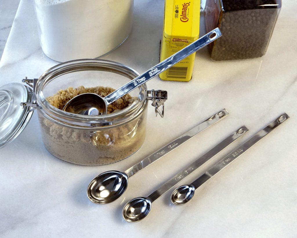 This set of 4 measuring spoons are ideal for canisters and tall jars. Spoons measure 2 Tbsp., 1 Tbsp., 1 tsp. and 1/2 tsp. and have 6-1/4″ long handles. Made from dishwasher safe 18/8 stainless steel.