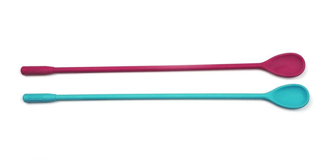 Rsvp strives to offer quality kitchen products and cooking tools at competitive prices. Our set of 2 long silicone spoons are a perfect example. The perfect length for stirring Coffee in a French press or mixing up a pitcher of sangria. Stir cream into an Iced Coffee or scoop a Smoothie from blender to glass. Utilize the long handle to reach into narrow neck jars like ketchup. Each spoon measures 1-inches in length. Made from heat-safe silicone up to 425 degrees Fahrenheit/ 22 degrees Celsius with a rigid metal core. Dishwasher safe. When all the right people, and ingredients, kitchen tools, and food come together, we call this the art of gathering.