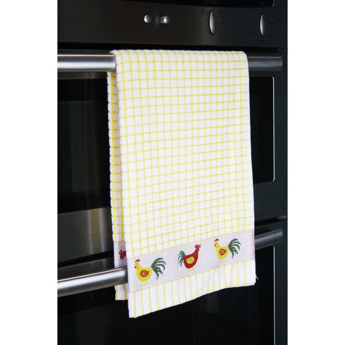 This 100% cotton towel with embrodiered chickens on a yellow and white checked background has been considered the best drying towel. Oversized at 19" X 27", the heavy weight and dense fabric weave provides multiple surfaces to absorb the maximum amount of moisture. The classic checked design will complement any kitchen design.