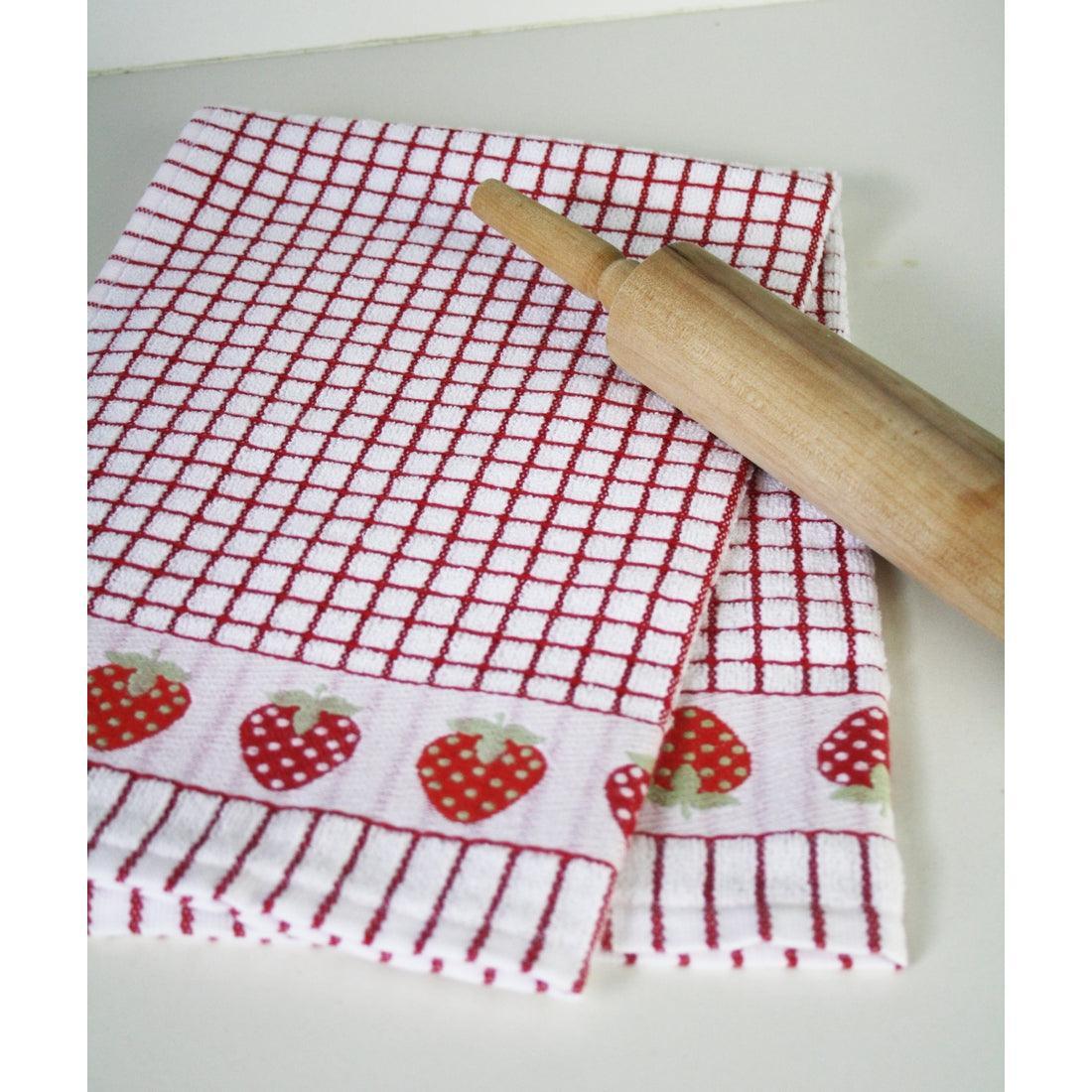 This 100% cotton towel with red strawberries on a red and white checked background has been considered the best drying towel. Oversized at 19" X 27", the heavyweight and dense fabric weave provide multiple surfaces to absorb the maximum amount of moisture. The classic checked design will complement any kitchen design.