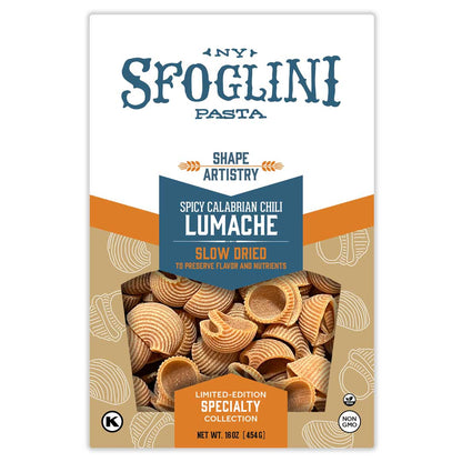 Spice lovers will fall hard for our limited-edition Spicy Calabrian Chili Lumache. This fiery pasta is made with real chilis to bring the heat to any pasta dish.