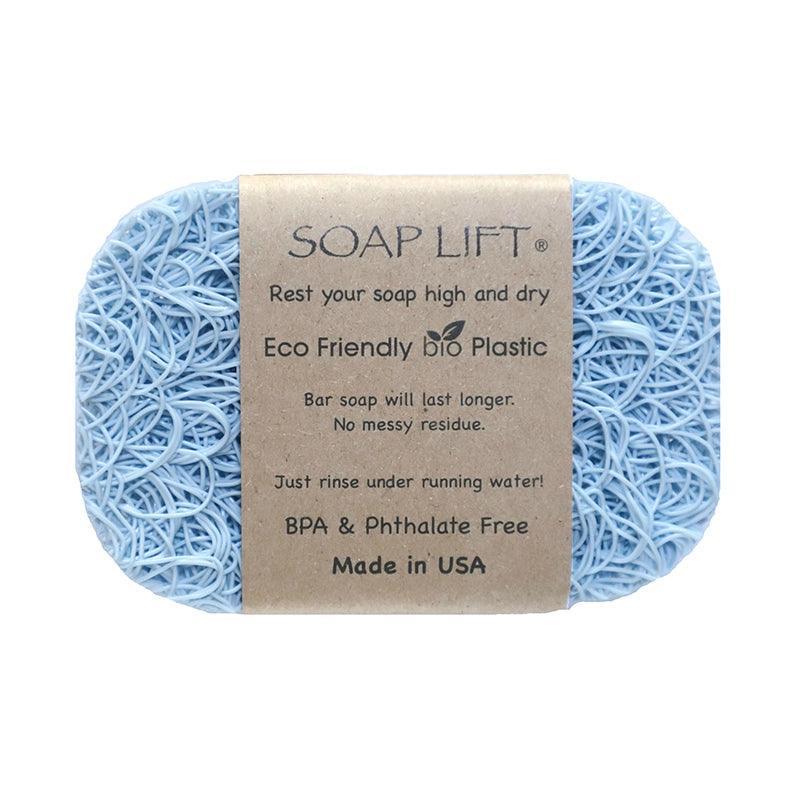 The Soap Lift® is the first of its kind. The Soap Lift keeps your favorite bar soap high and dry, lifting it out of standing water so it dries faster and lasts longer! Made from bioplastic and recyclable. Don’t let your soap turn into muck! Soap Lift® is made of a multi-directional bioplastic that allows water to drain and air to circulate. They can be used in soap dishes, on shower shelves, or on countertops. Cleans remarkably well by simply holding it under running water and giving it a few squeezes. Approx. size: 2.75″ x 4.25″. Can be trimmed to fit soap dishes, if necessary.