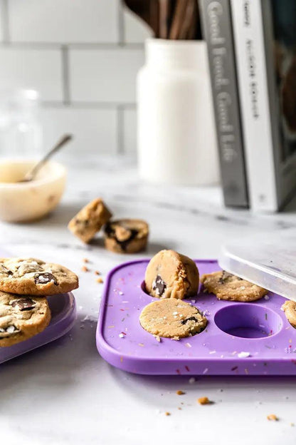 Included in this set are two cookie trays and two lids, freezing a total of 20 cookie dough discs. A steel-embedded rim and thick food-grade silicone keeps each tray sturdy. Our snug- fitting lid keeps odors out and enables easy stacking.
