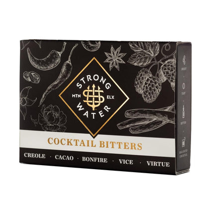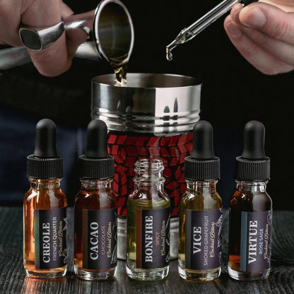 This custom gift box includes 1/2 oz dropper bottles of the following bitters: