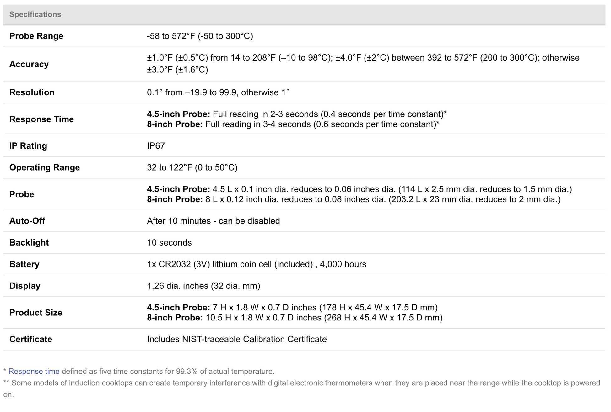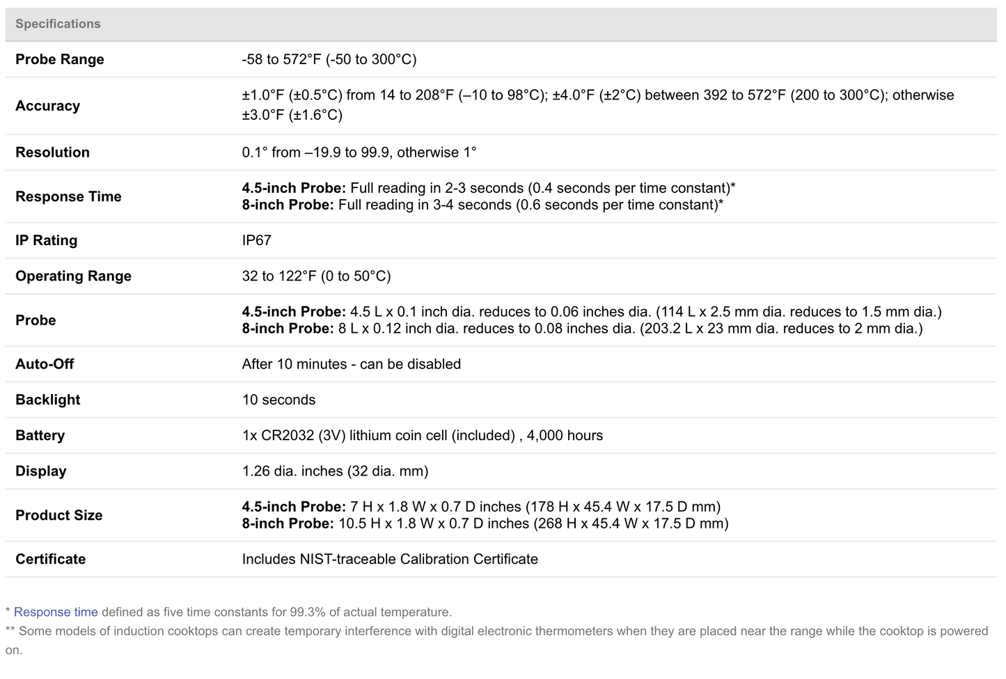 The 8-inch probe is also slightly thicker in diameter to support the greater length and has a one second slower response time.