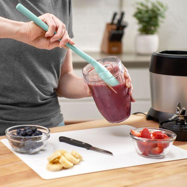 Designed to fit into hard-to-reach areas of your blender, this long-handled spatula will help you get every drop. The flexible edges help you scrape the sides of the blender, and the curved head helps you get under the blades.