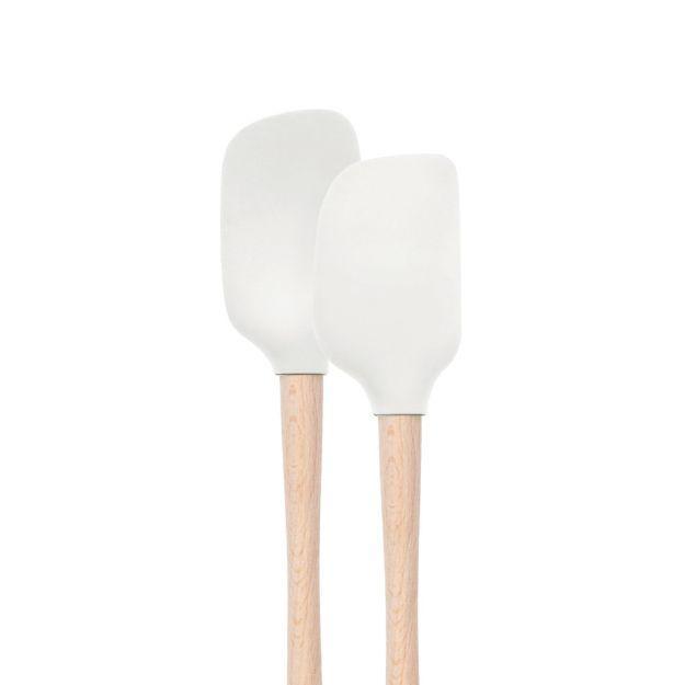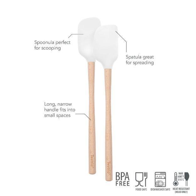 Tovolo Flex-Core Wood Handle Mini Spatula & Spoonula (Set of 2): White