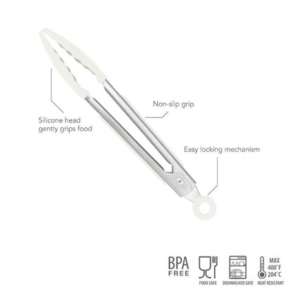 - Pull Ring Locks Arms in Place: Keep the tongs closed with the handy locking mechanism, ensuring they fit neatly in drawers.