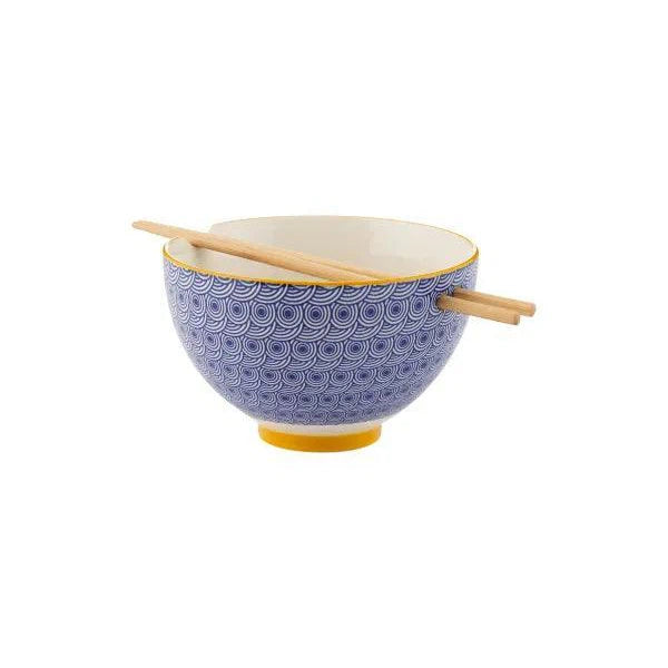 The Typhoon World Foods Tokyo Noodle Bowl is perfect for authentic Japanese dining. Produced with an on trend wave pattern in blue and finished with a complementary yellow rim, the bowl is striking and vibrant.