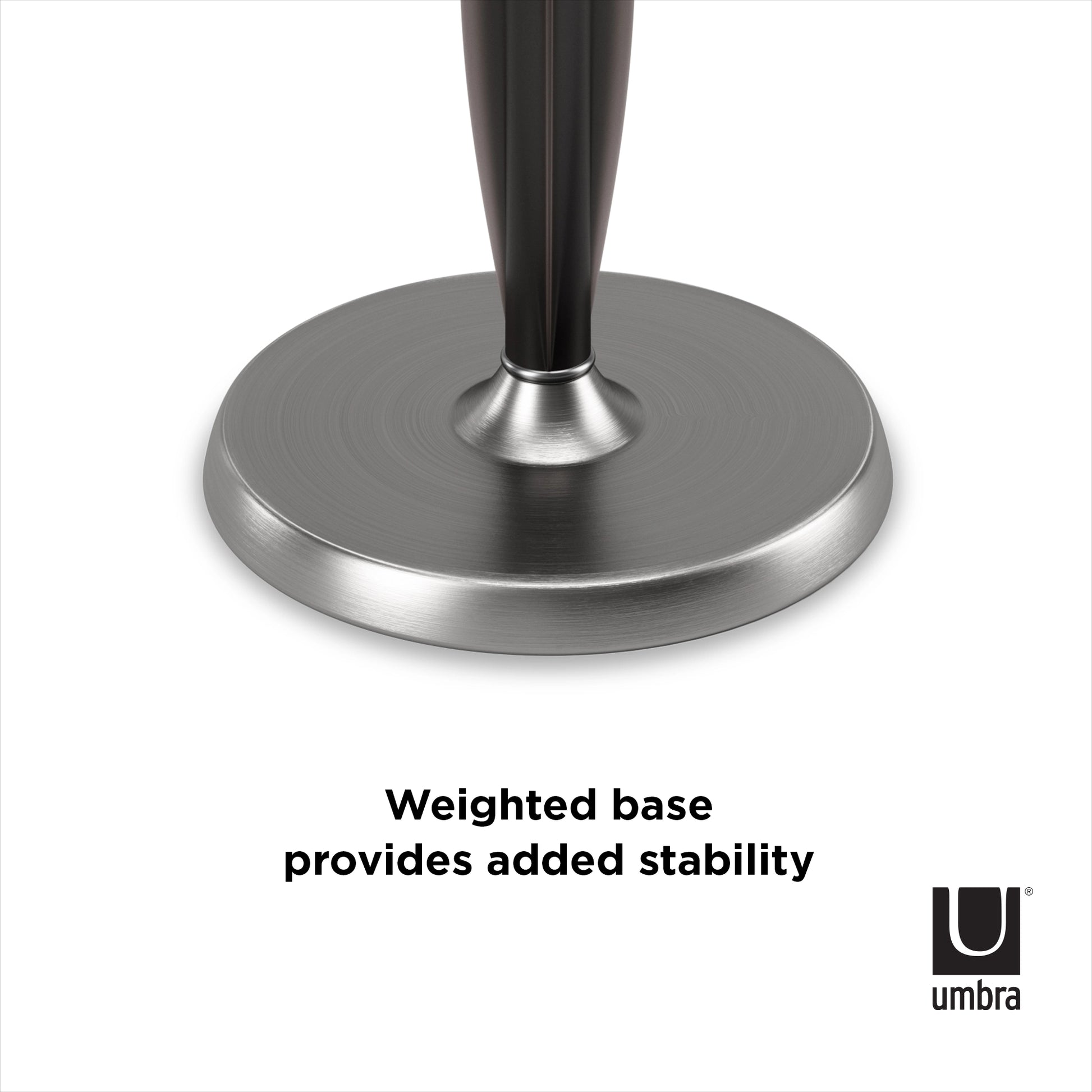 Modern & Elegant: Tug is a modern stand up paper towel holder with smooth, elegant lines and available in a variety of modern finishes Patented Design: The secret behind Tug’s patented design is its curved rubber spine which secures the core of your paper towel roll so you get an easy one-handed tear every time