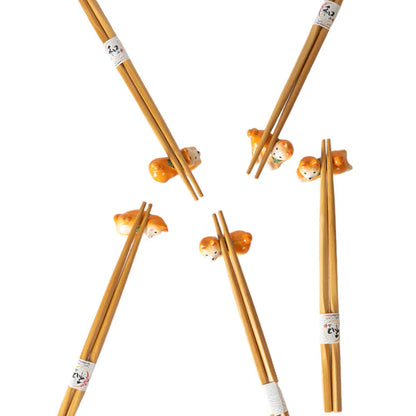 5 Pairs of Bamboo Chopsticks and Shiba Porcelain Chopsticks Rests!