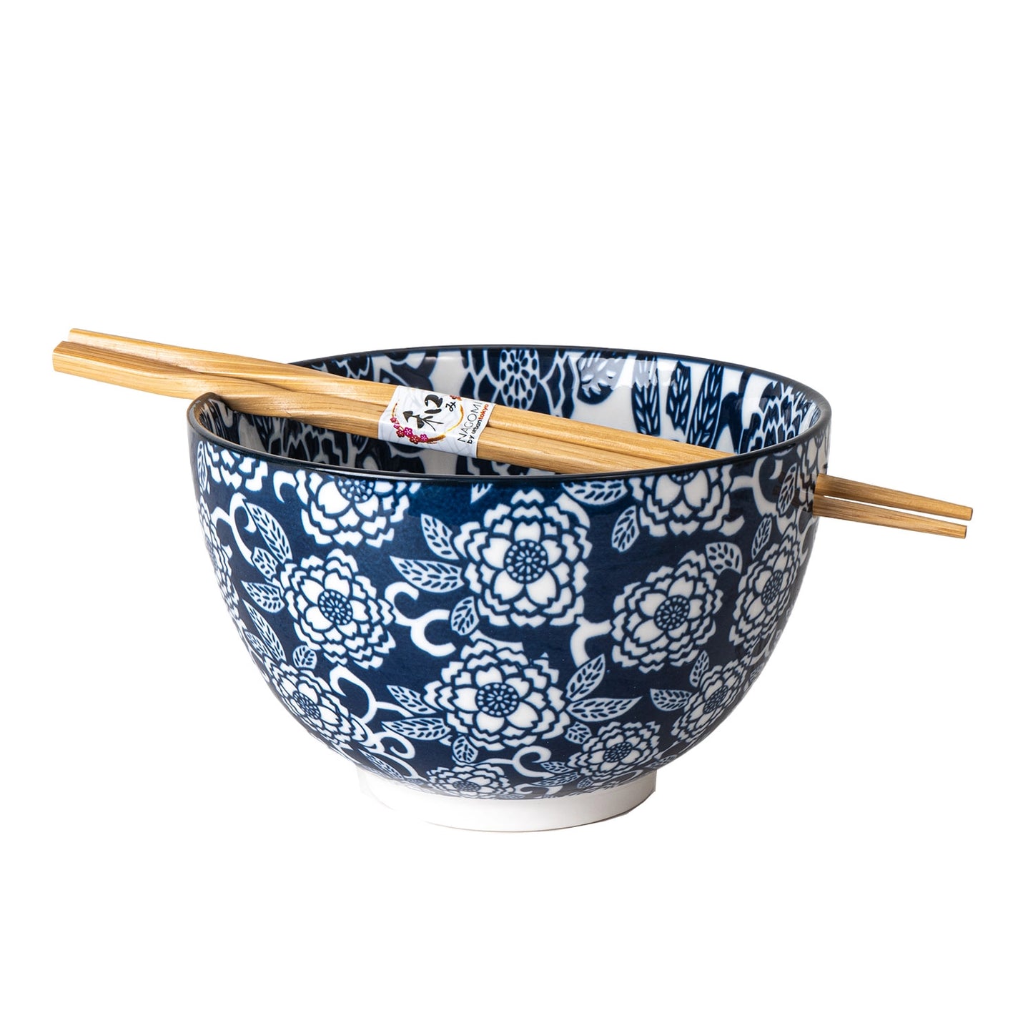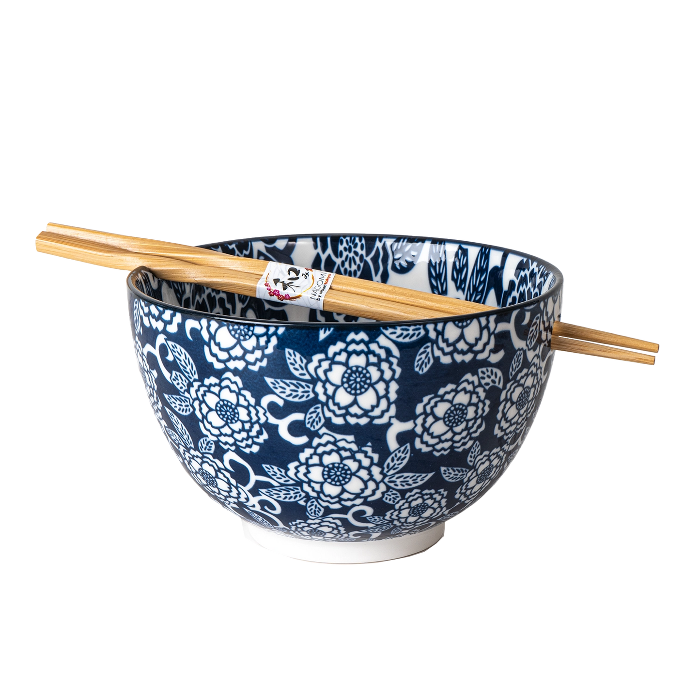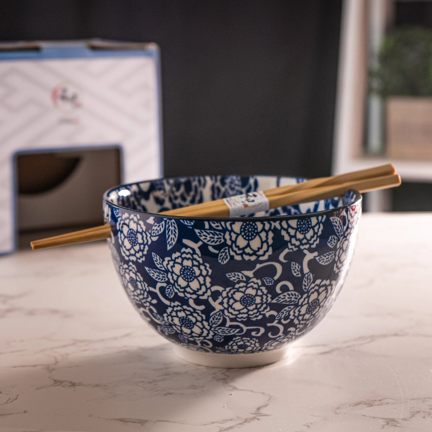 Urban Tokyo Noodle Bowl with Chopsticks: 20 oz, Botan Flower