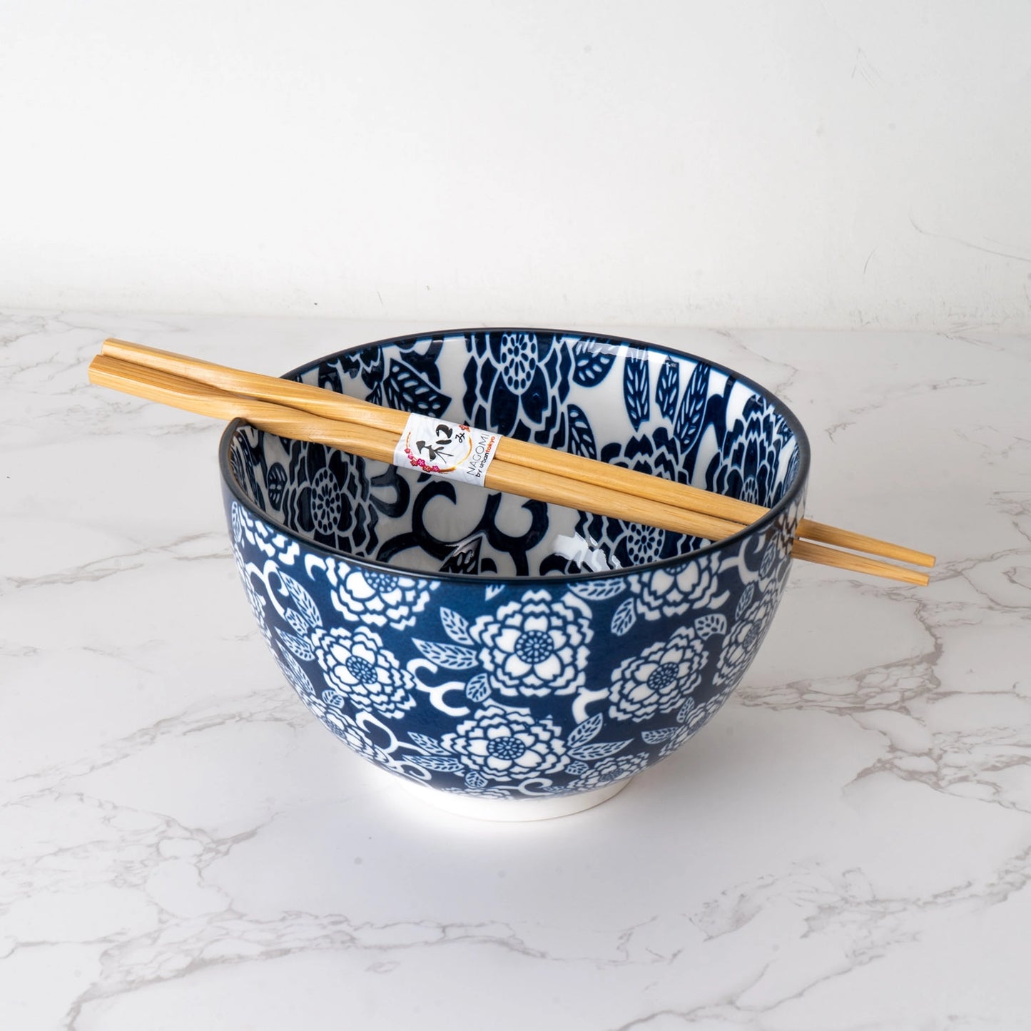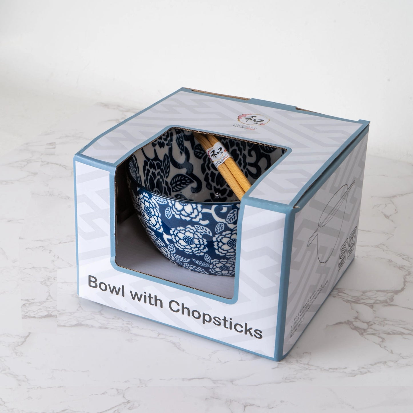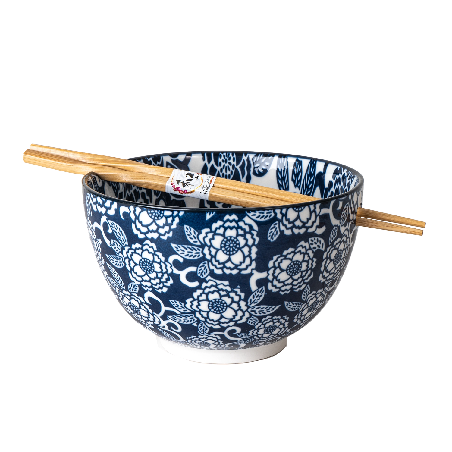 Urban Tokyo Noodle Bowl with Chopsticks: 20 oz, Botan Flower