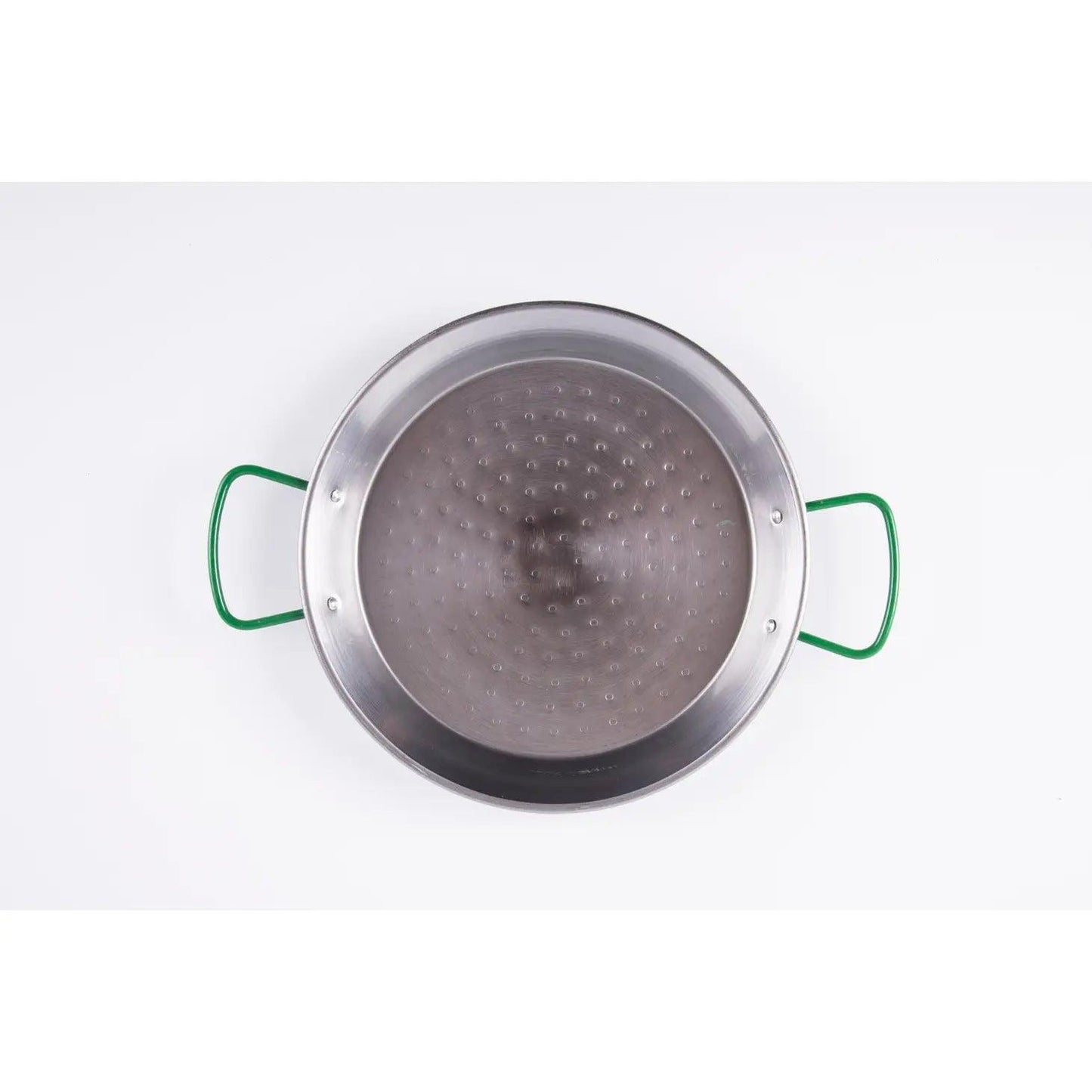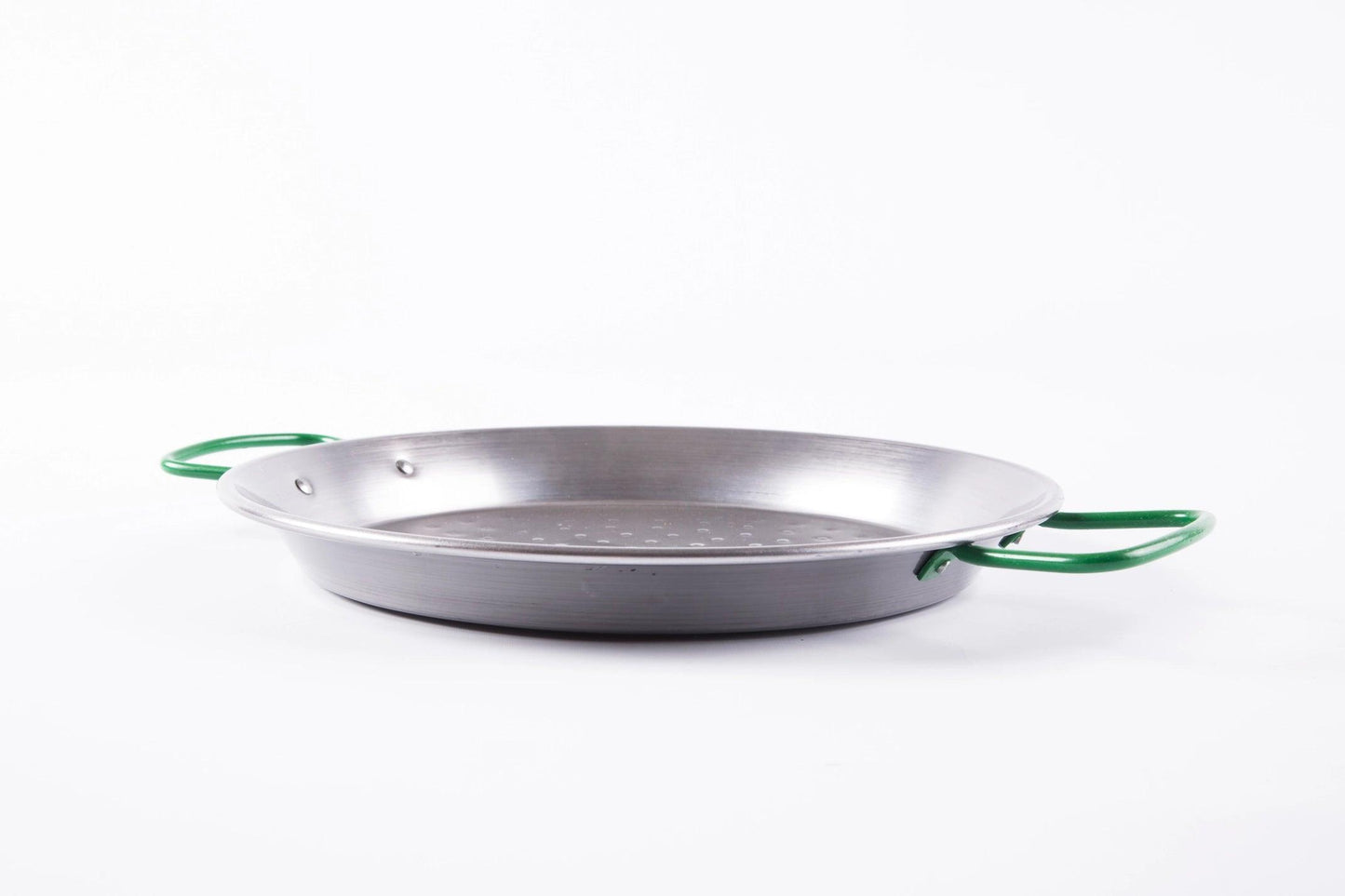 Founded in 1950 in Spain, the VAELLO name is well recognized as it is used in more than 95% of Spanish households. Carefully designed - the bottom of the pan is dimpled in order to spread the heat evenly. Each pan features two riveted handles for secure transport. Pans are oven and stovetop safe and can be used with wood and gas cooking surfaces. The deep sides allow for splatter-free stirring as you create your masterpiece. A leader in the manufacturing of paella pans, dedicated to achieving the highest quality of products, it was the first company in its sector to obtain the iso 9003 certification and the CE mark.