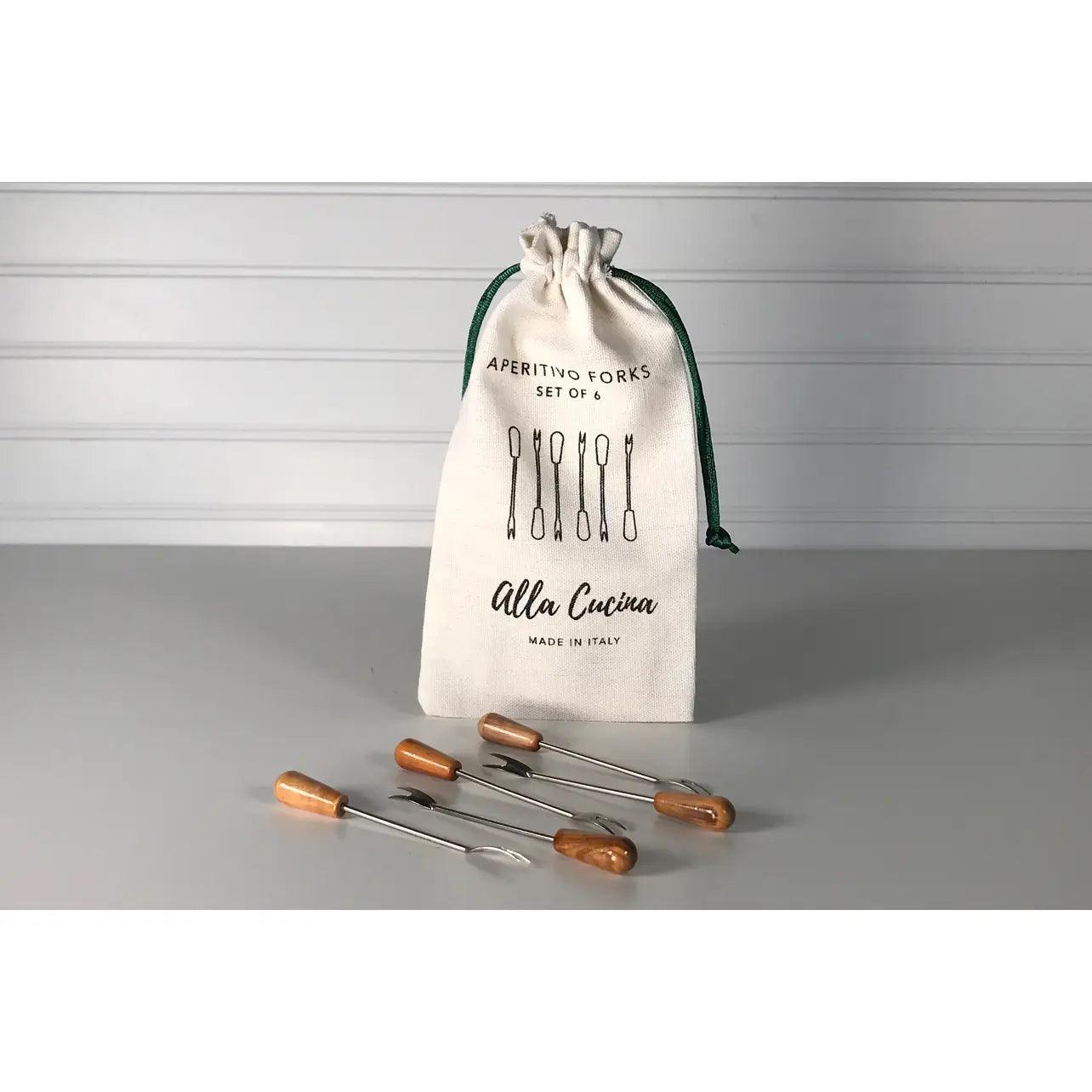 Verve Culture Italian Olivewood Appetizer Forks (Set of 6)