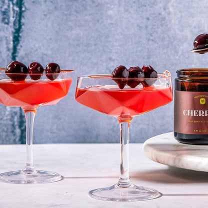 Our boozy cherries are handcrafted with our own signature blend of bitters and real Kentucky bourbon without artificial ingredients, preservatives or corn syrup-- need we say more? Crafted in the Bordeaux style, with a rich syrup and exceptionally dark color, these cherries are essential for your next Old Fashioned or Manhattan. Or just eat them straight from the jar.
