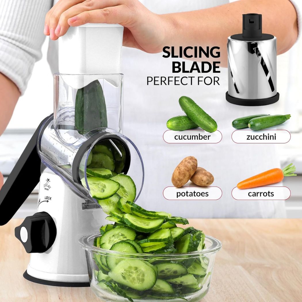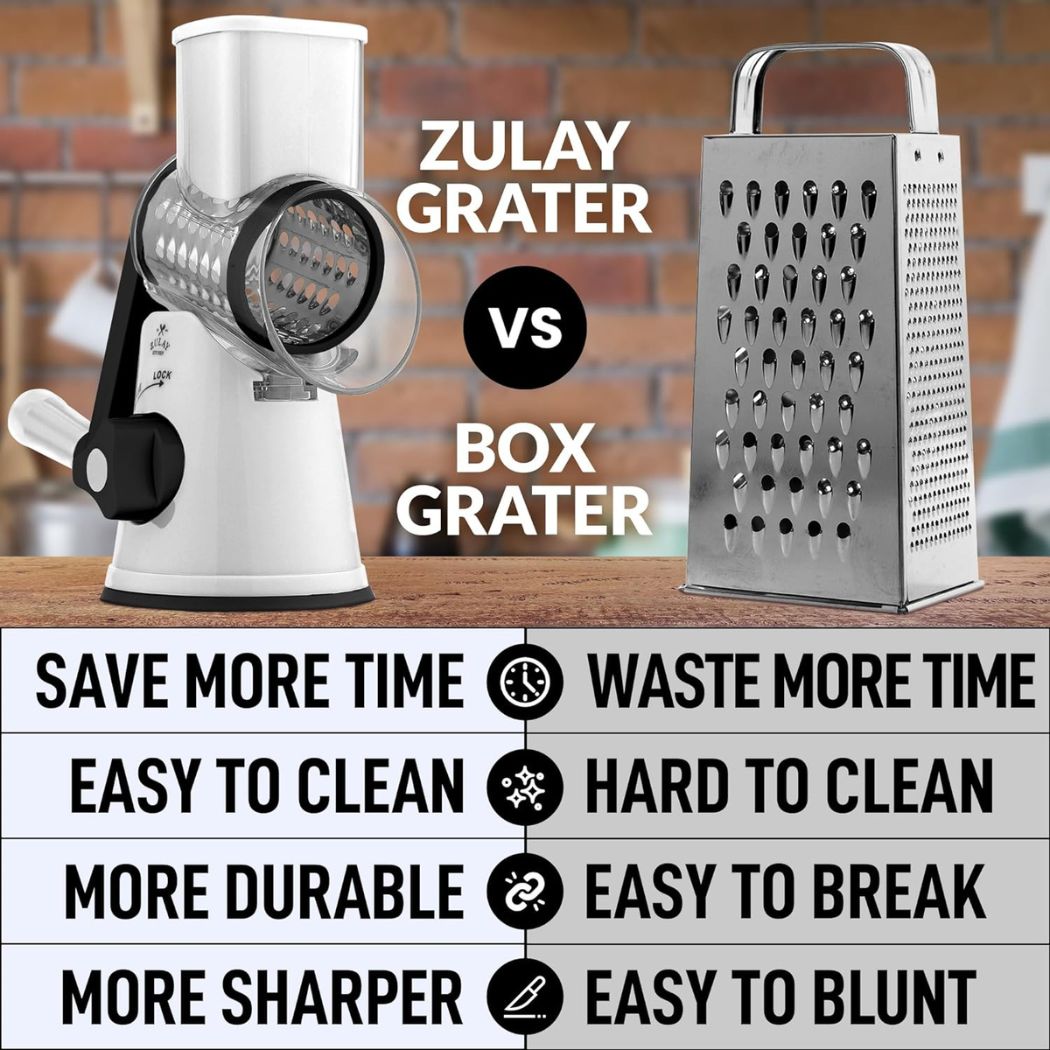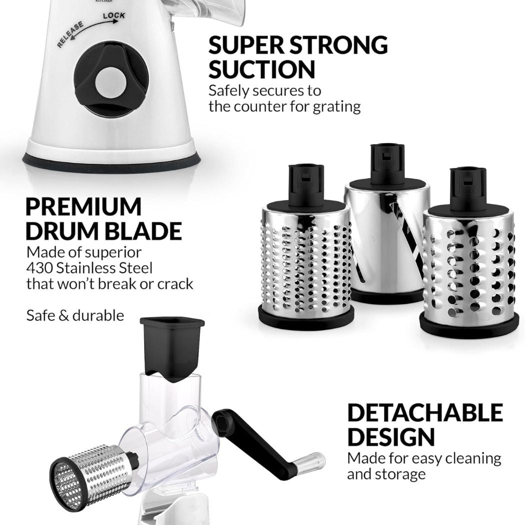 Zulay Kitchen Rotary Cheese Grater with 3 Interchangeable Drums: White